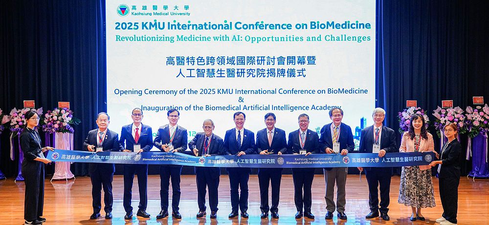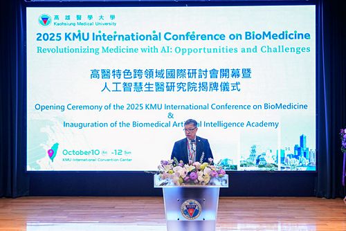 本校於2025年10月10日至12日盛大舉辦「2025高醫特色跨領域國際研討會(2025 KMU International Conference on BioMedicine, ICOBM)」,並於開幕式舉行「人工智慧生醫研究院」揭牌典禮,宣示本校正式邁入智慧醫療與跨領域創新研究的新階段。典禮邀請衛生福利部部長石崇良、中央研究院院士吳成文及國內外產學研代表蒞臨,共同見證高醫邁向智慧醫療新時代的重要時刻。
