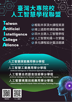 在人工智慧飛速發展的時代浪潮中,AI議題與應用已成為各行各業不可忽視的核心趨勢。教育領域也正積極尋求與AI跨域整合的契機,擁抱變革以培育未來需求的新世代跨域人才。臺灣大專院校人工智慧學程聯盟(Taiwan Artificial Intelligence College Alliance, TAICA )正是在此時代背景下應運而生,致力於推動跨校人工智慧資源的合作與共享。