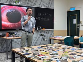 114年11月21日本次旨在探索個人情緒表達與同理心培養之應用。提供學生提升個人自我情緒覺察能力,並強化對他人情感的理解與共情、同理心之建立,彰師大吳明富老師,以表創性藝術治療多元媒材方式,透過完形三界,眼、腦、心引導,先由扎根練習出法,將自我「心相」逐漸建構浮現,並透過圖卡引導學生選出對應心相之圖卡。透過該圖卡表達最符合自我心相的想法感受、期待、觀點與渴望,並透過心相攝影從不同視角看待日常生活,包含同理心視角拍、模糊拍、字母拍、故事拍,實際讓學生走出戶外拍攝相片,並探討「相片背後的內在冰山」,透過攝影將內在題材外化,將鏡頭裡表達的透過減法歷程顯現,共同分享相片背後的感受與想法。