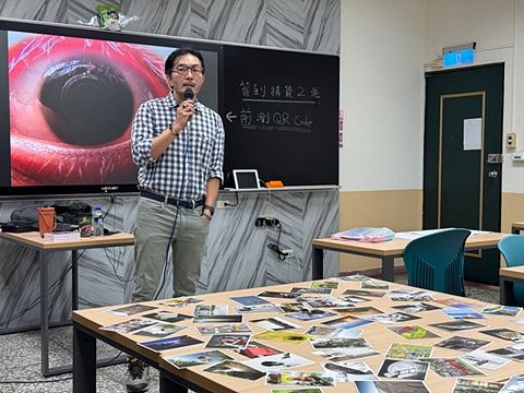 【醫社系黃瑜如老師、心理系何文澤老師合辦】 114年11月21日本次旨在探索個人情緒表達與同理心培養之應用。提供學生提升個人自我情緒覺察能力,並強化對他人情感的理解與共情、同理心之建立,彰師大吳明富老師,以表創性藝術治療多元媒材方式,透過完形三界,眼、腦、心引導,先由扎根練習出法,將自我「心相」逐漸建構浮現,並透過圖卡引導學生選出對應心相之圖卡。透過該圖卡表達最符合自我心相的想法感受、期待、觀點與渴望,並透過心相攝影從不同視角看待日常生活,包含同理心視角拍、模糊拍、字母拍、故事拍,實際讓學生走出戶外拍攝相片,並探討「相片背後的內在冰山」,透過攝影將內在題材外化,將鏡頭裡表達的透過減法歷程顯現,共同分享相片背後的感受與想法。